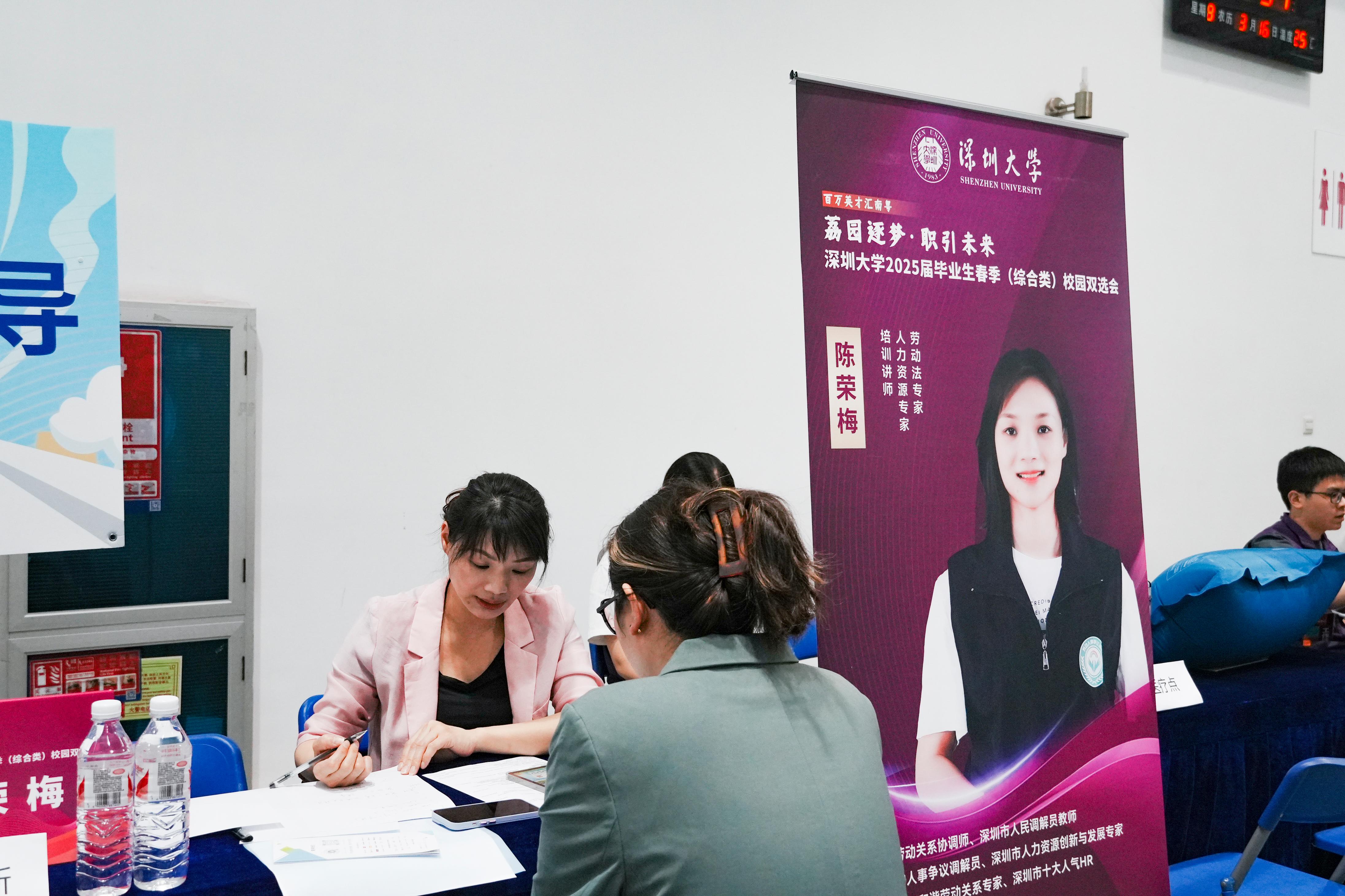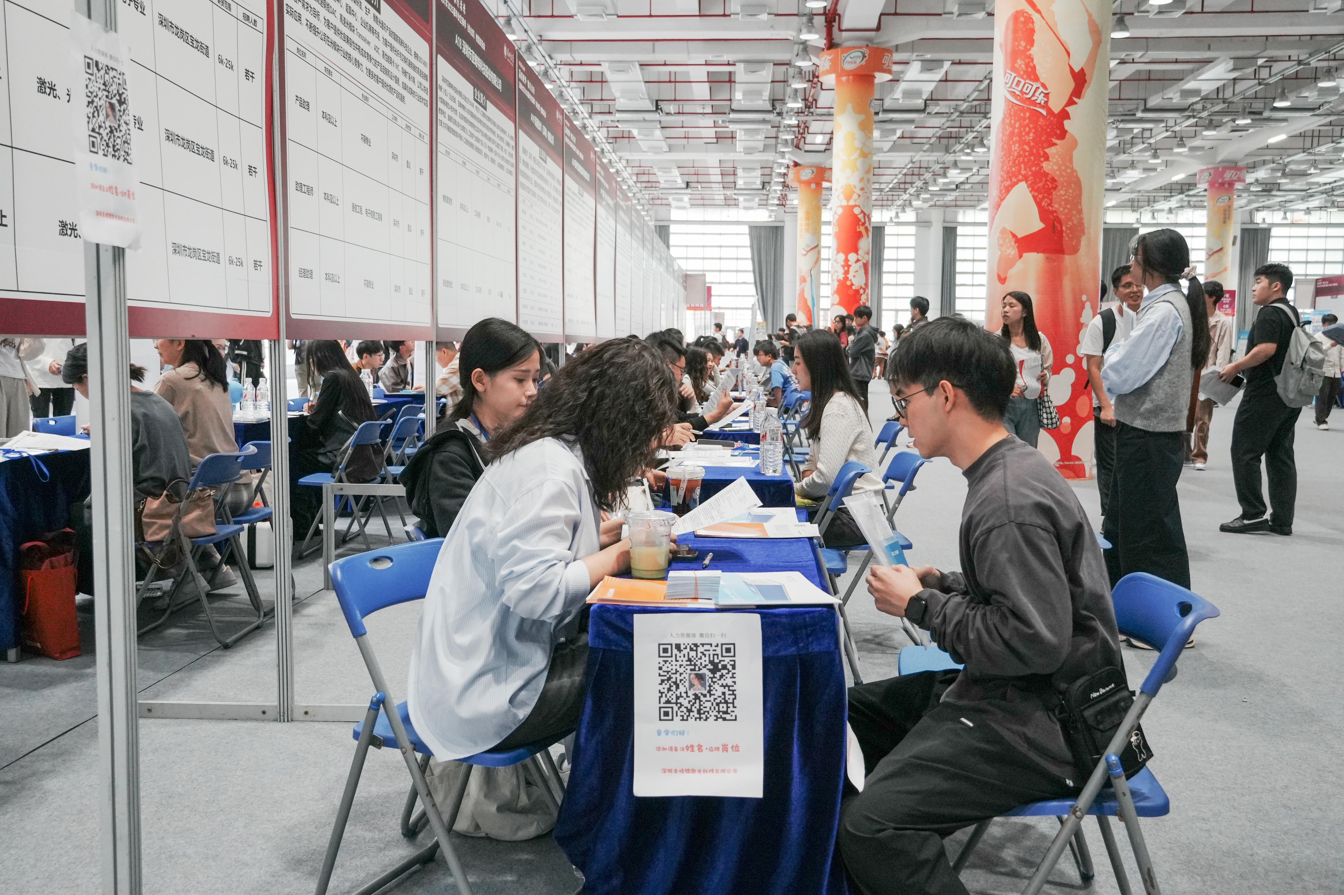 深圳大學學生就業指導中心負責人表示,本次雙選會是深圳大學落實“穩就業”“保就業”政策的重要舉措,學校結合2025屆畢業生學科分布情況,調研企業需求,崗位匹配度較往年有較大提升。在深圳大學與深圳市人力資源生態服務平臺聯合特設的“職引未來”服務專區,AI簡歷診斷區為300余名學生優化求職材料,就業導師團隊還提供面試模擬、生涯規劃等“一對一”服務。金融學專業的王同學在“職引未來”服務區接受了簡歷優化指導后表示,自己的發展方向更加明確了。來自香港中文大學的趙同學跨校參加此次雙選會,他表示,自己在一小時內投出8份簡歷,效率遠超線上求職。