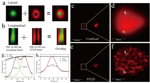 光學顯微成像技術是生物醫學研究的重要工具,但是由于存在光學衍射極限,導致傳統光學顯微成像技術最高只能實現半波長(約200nm)的空間分辨率。鑒于此,人們開發了一系列超越衍射極限的光學成像技術,以獲取更高的空間分辨率。STED (stimulated emission depletion)超分辨成像技術便是其中的一種。