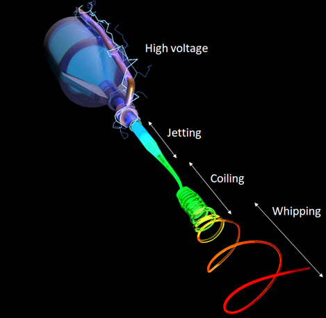 粘性液體的Coiling instability(卷繩不穩定性)和靜電紡絲中的Whipping instability(鞭動不穩定性)是生活和科研中經常碰到的兩種流體力學的現象,但因為這兩種不穩定性從來沒有在同一個體系中同時被觀測到,所以關于這兩種現象之間的相似性和聯系很模糊,學術界一直存在爭爭議。該研究利用低界面張力系統首次在實驗中同時觀察到靜電紡絲中的鞭動不穩定性與粘性流體的卷繩不穩定性,由此對帶電射流的多種不穩定性進行了系統表征和理論模型的深入研究,闡明了這兩種不穩定性的區別和聯系,并總結了帶電射流尺寸與復雜流體的物性參數和實驗控制參數的定量關系,以及由此可產生的多種動態模式。
