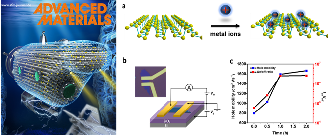 近日,深圳大學(xué)張晗特聘教授課題組在材料學(xué)領(lǐng)域的權(quán)威刊物《Advanced Materials》(影響因子19.791)中發(fā)表一篇題為“Metal-ion-modified black phosphorus with enhanced stability and transistor performance”(金屬離子修飾增強(qiáng)黑磷的穩(wěn)定性和晶體管性能)的論文,在該工作中,通過(guò)金屬離子修飾的方法制備出高穩(wěn)定性且高性能的黑磷晶體管。本工作是與中科院深圳先進(jìn)技術(shù)研究院喻學(xué)鋒研究員團(tuán)隊(duì)和武漢大學(xué)廖蕾教授團(tuán)隊(duì)合作完成。論文第一作者是郭志男博士。