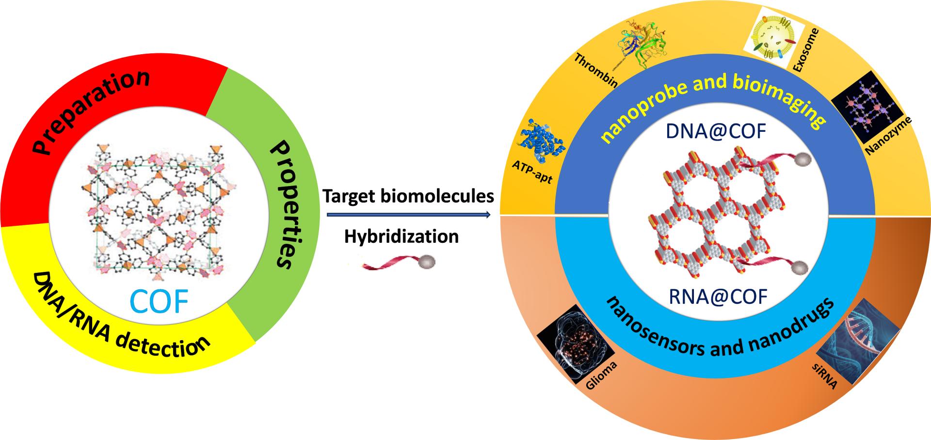 摘要圖: DNA/RNA雜交的COF納米探針在生物分析檢測、臨床生物醫學和生物標志物成像等方面的潛在應用。