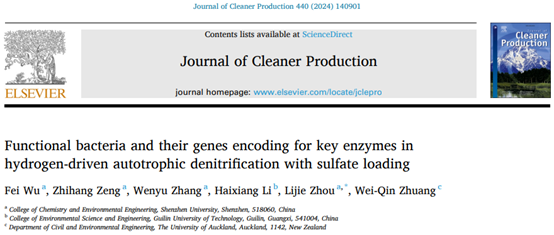 近日,深圳大學化學與環境工程學院周禮杰副教授團隊在期刊《Journal of Cleaner Production》(影響因子11.1,中科院JCR 1區,TOP期刊)上發表了題為《Functional bacteria and their genes encoding for key enzymes in hydrogen-driven autotrophic denitrification with sulfate loading》的研究論文。該團隊周禮杰副教授為論文第一通訊作者,碩士研究生吳菲為論文第一作者,深圳大學為第一作者單位及通訊單位。