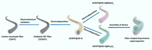 圖纖維狀柔性不對稱超級電容器組裝示意圖