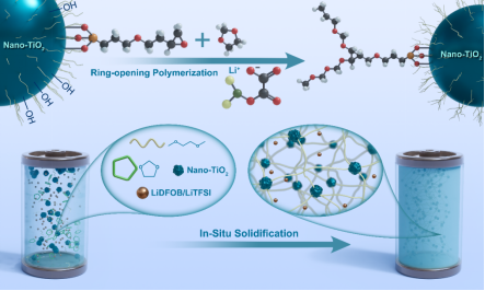 圖1.納米粒子雜化交聯(lián)復(fù)合聚合物電解質(zhì)的原位制備示意圖