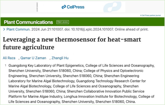 深圳大學生命與海洋科學學院博士后Ali Raza為該文第一作者,胡章立教授為論文的通訊作者。海南大學的Qamar U Zaman為論文共同作者參與部分工作。