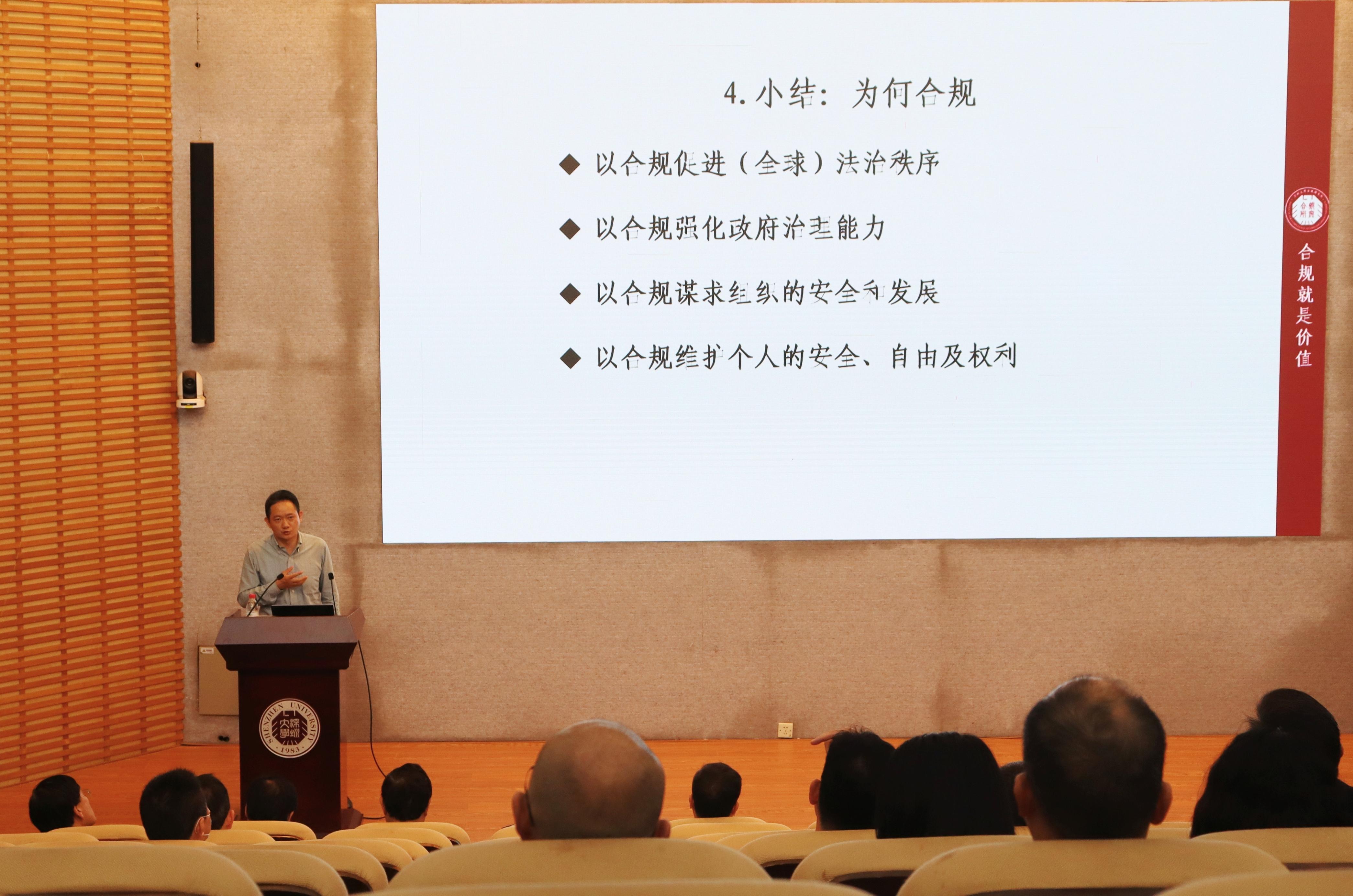 在黨委理論學習中心組(擴大)學習會上,法學院副院長、合規研究院執行院長葉海波教授作《合規建設的理論與實踐》專題報告,從合規建設的時代趨勢、合規的案例認識、何謂合規、為何合規、如何合規等方面進行闡述和講解。