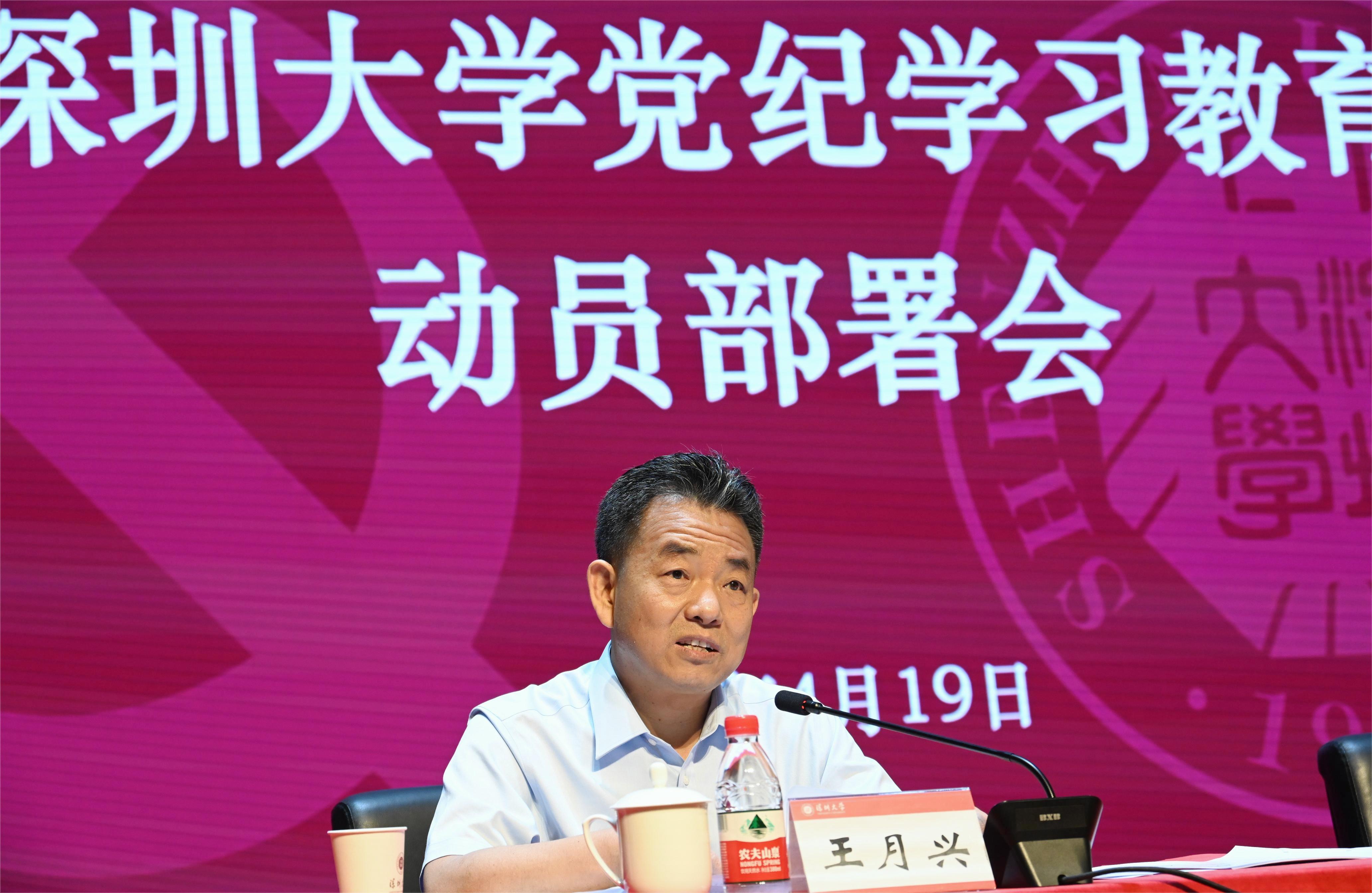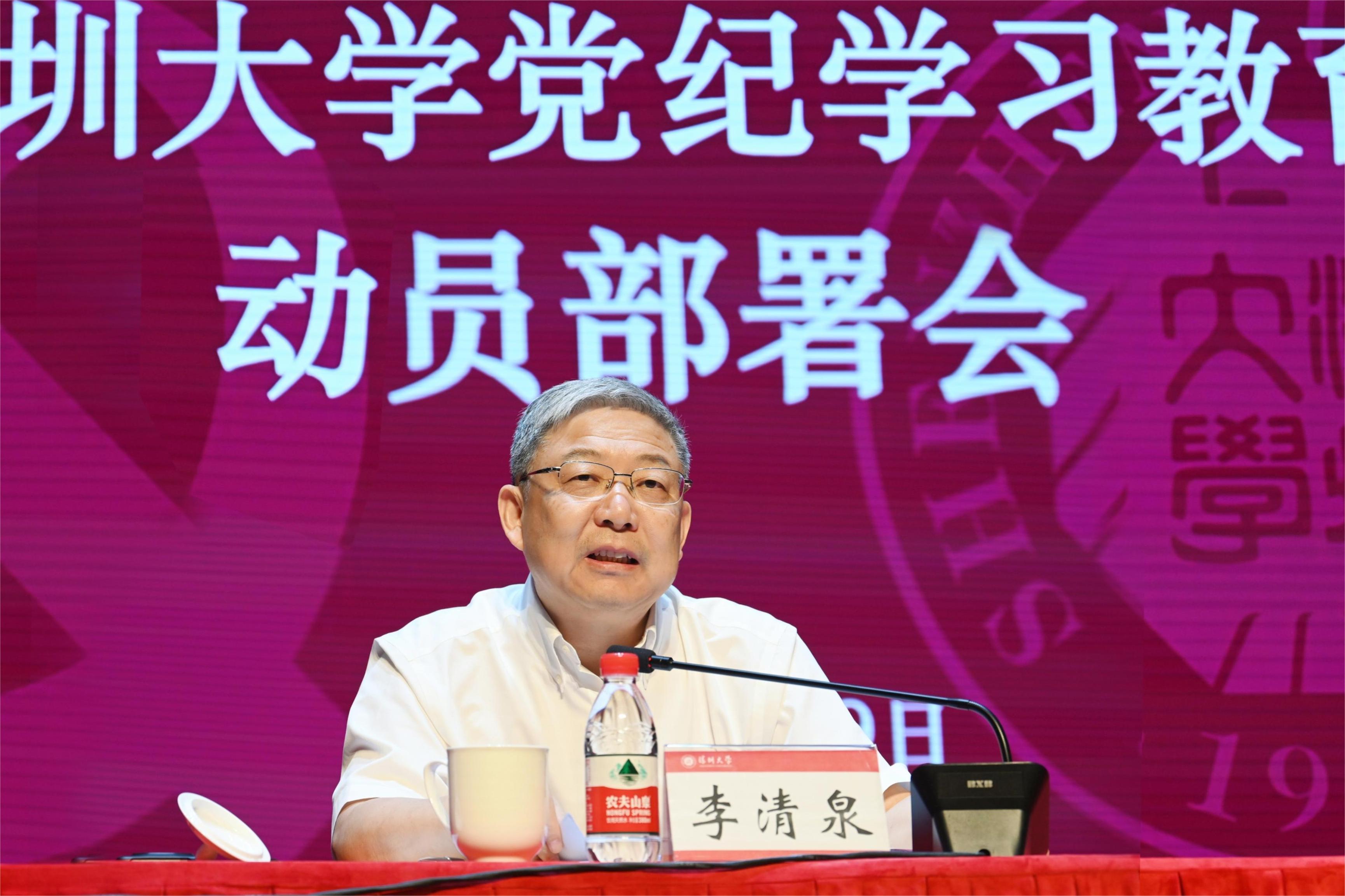 4月19日上午,深圳大學黨紀學習教育動員部署會在粵海校區國際會議廳召開。深圳大學黨委書記李清泉對黨紀學習教育進行全面部署。黨委副書記、校長毛軍發傳達學習中央黨的建設工作領導小組會議精神。黨委副書記、紀委書記王月興對全校開展黨紀學習教育進行具體安排。